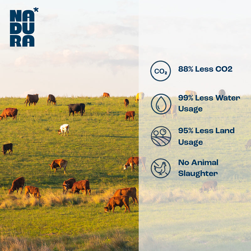 88% lower carbon footprint, 95% less land and 99% less water usage