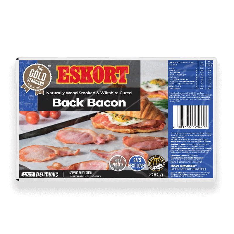 Order Naturally Wood Smoked Rindless Pork Back Bacon from South Africa!